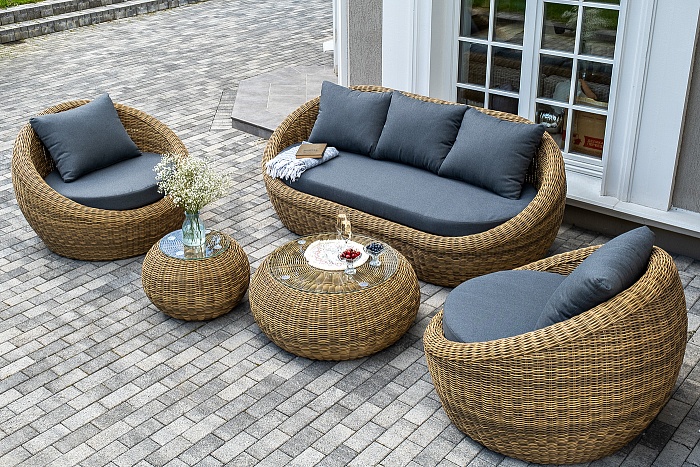 Плетеная мебель из искусственного ротанга обеспечивает естественную циркуляцию воздуха благодаря ажурной структуре. В отличие от сплошных поверхностей, плетение позволяет воздуху свободно проходить, предотвращая накопление влаги и создавая ощущение свежести.